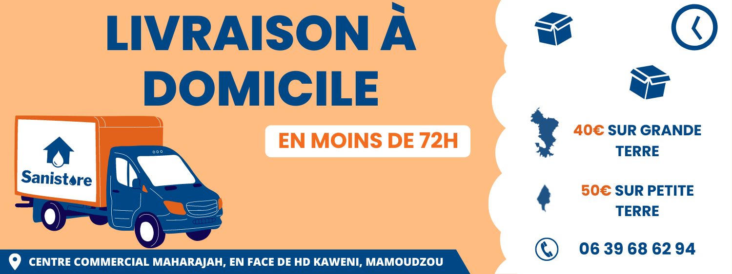 Pour tout achat en magasin, le coût de la livraison n’est que de 40€ sur Grande-Terre et 50€ sur Petite-Terre. La livraison des carrelages sol est à 70€ sur tout Mayotte.